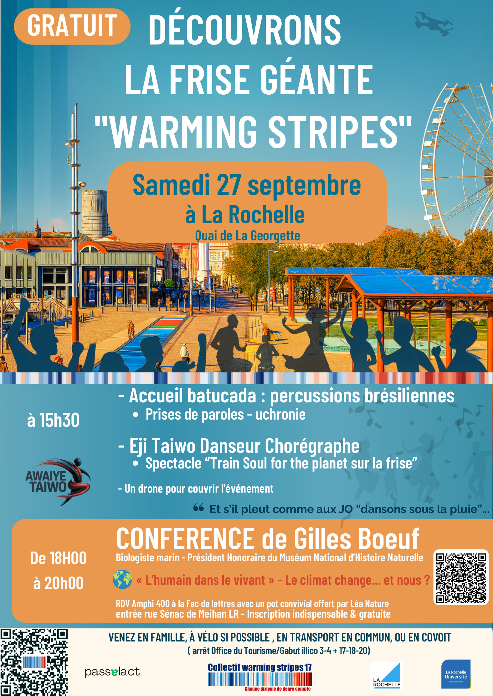 Passalact, association porteuse du Collectif Citoyen : Collectif Warming Stripes 17, a été crée pour mener à bien le projet “Warming Stripes” à La Rochelle : une fresque géante au sol de 80 repésentants des “Bandes de réchauffement” pour sensibiliser le grand publique à l'urgence climatique. Une première en France !…