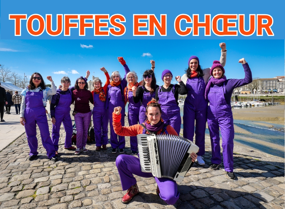 Créée en 2021, la chorale Touffes en Chœur rassemble des femmes choristes qui œuvrent pour porter et faire connaître un répertoire des chansons féministes, anciennes et actuelles, pour chanter et porter les combats féministes. Nous participons ainsi de manière artistique et joyeuse à l'information, la sensibilisation et la lutte pour les droits des femmes et pour développer une culture de l’Égalité.